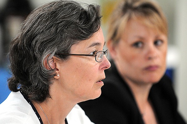 Kalispell City Manager Jane Howington, left, speaks on Monday before a legislative panel on government efficiency. To the right is Kalispell Mayor Tammi Fisher.