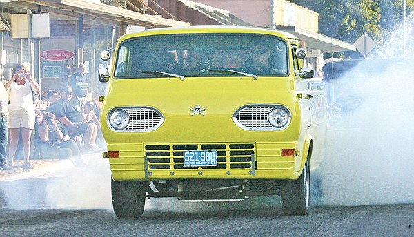 Keith Dondaneau of Golden, B.C. in a '63 Ford Econoline pickup with a 347 lays rubber on Mineral Avenue Friday