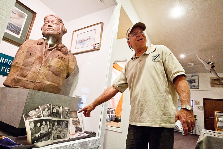 Posters, planes, plaques honoring the local Aviation Hall of Fame members, newspaper articles, even a statue bust of the local flying legend Pappy Boyington.