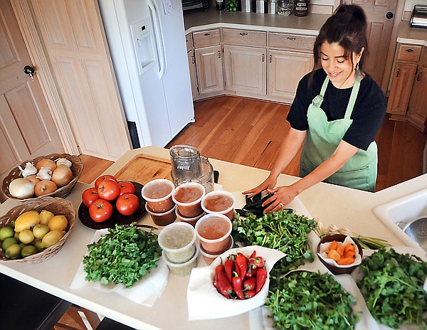 Jeannie Sattler of Whitefish works in her kitchen on Wednesday afternoon preparing vegetables and making salsa to sale on Saturday at the US Troop Fund Bake Sale at Army/Navy of Whitefish. The sale is scheduled to run from 10 a.m. to 4 p.m. Proceeds will be used to purchase and ship supplies to troops and schools in Afghanistan. Also at the bake sale people can view and buy raffle tickets for a quilt that will be raffled at noon on September 11 at the Whitefish VFW. Sattler has volunteered for the bake sale for four years. Later this week she'll be working on bananna nut bread and cherry pie, also for the sale.