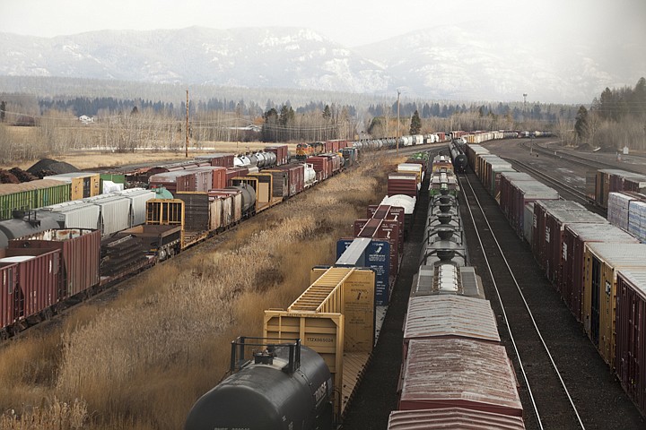 Burlington Northern Sante Fe trains fill the rail yard in Whitefish Wednesday afternoon.