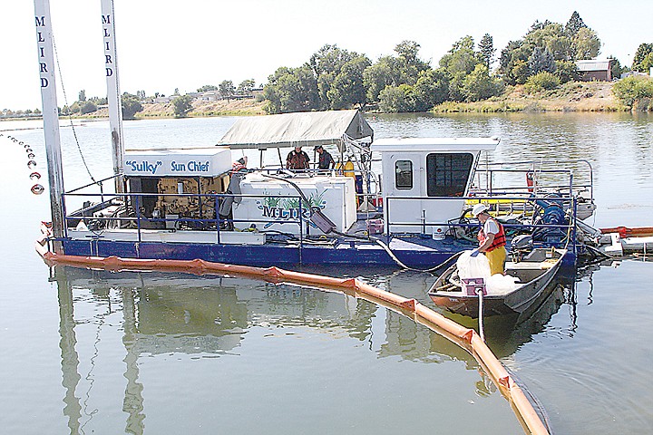 The dredge is used to remove silt from the lake and was partially sunk in Parker Horn in September by an act of sabotage, according to the district.