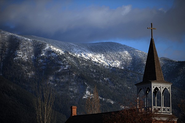 The steeple of the old St. Richard’s Catholic Church in Columbia Falls contrasts with the snow-dusted Swan Mountain Range. The former church is currently the office of chiropractor Dr. Robert Hager.