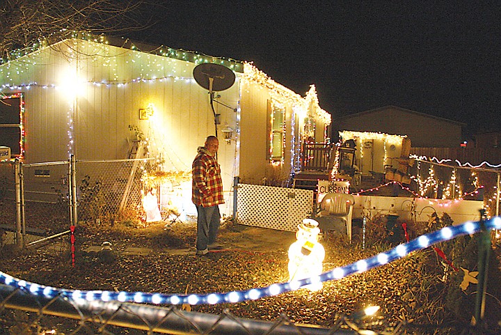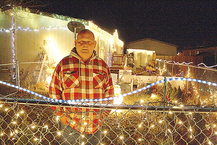 His home on North Grape Drive in Moses Lake is covered in more than 8,000 lights and his yard is adorned with everything from a glowing Frosty the Snowman statue to a hand built manger housing the Holy Family.