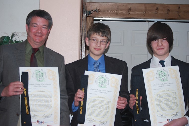 Through hard work, and perseverance, Pat Rodgers, his son Ben, 15, and Zach Cleave, 15, received their black belts in Taekwondo.