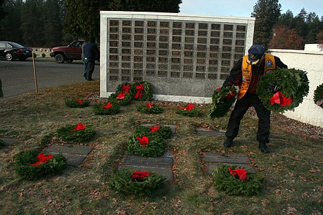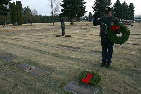 "I don't know a soul out here. I just picked up wreaths and came out to lay them down," the Rathdrum woman said. "I have no personal favors. Everybody here served for the same purpose."