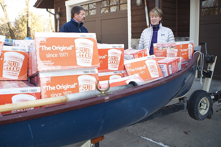 Both are coordinating food purchases this year. Charlie Maetzold said they already have finished most of the shopping and have a garage full of food waiting to be packed in the Holiday Food Bags.