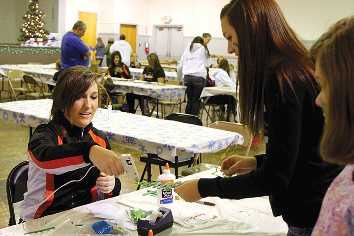Nearby Ephrata High School Dance Team members Jeryn Smock, 17, and Rebecca Rolfe, 18, were helping kids decorate Christmas ornaments.