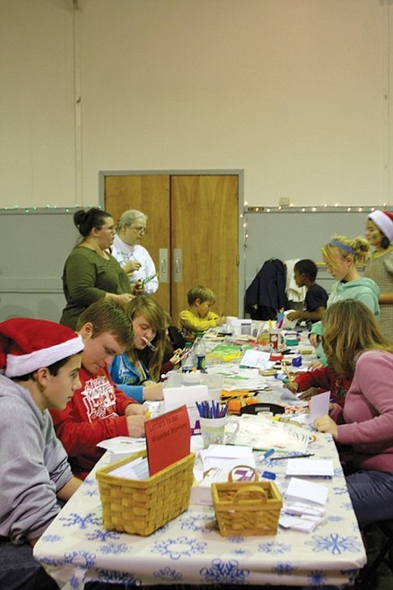 At a letter writing station, Travis Hendrick, 6, of Ephrata, was penning a note to his cousins, Jack and Sam. Travis' letter was decorated with a green Christmas tree.