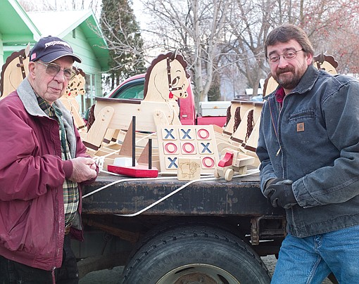 In addition to the rocking horses, the Columbia Falls High School shop program provided wooden toys for the program, including tic-tac-toe boards, blocks, wooden boats and wooden trucks.