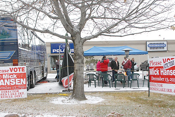 MOSES LAKE - Driving along Moses Lake's Broadway Avenue, it's hard not to notice the huge "Elect Mick Hansen, vote today," banner stretched across a large motor home.