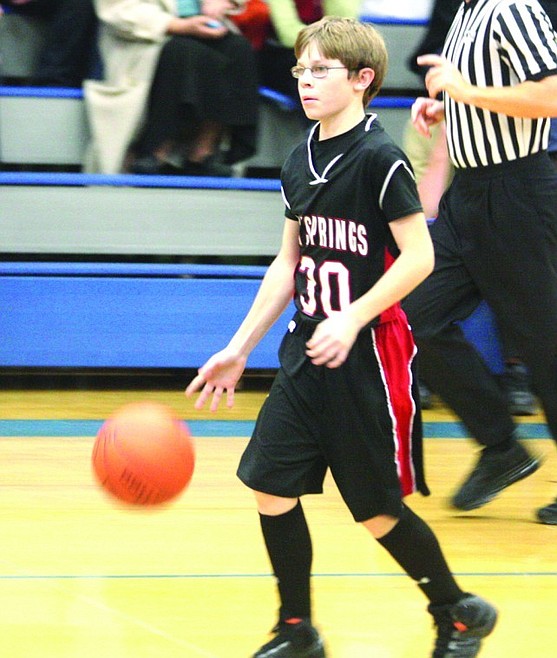 Jarod While of Hot Springs moving the ball down the court in a game against Plains.