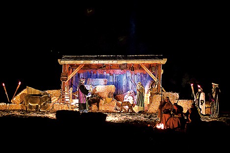 The program takes visitors to Bethlehem with 10 different scenes. They include the Old Testament prophecy of Jesus' birth, an angel tells Mary she is going to have a baby, Ceasar decreeing a census be taken, an angel tells shepherds in the field about Jesus' birth and three wise men come with camels.