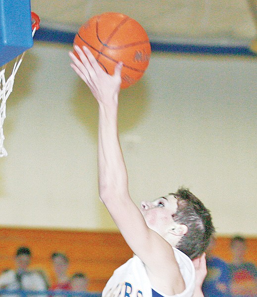Senior Elias Lapka scores on a steal first quarter vs Libby.