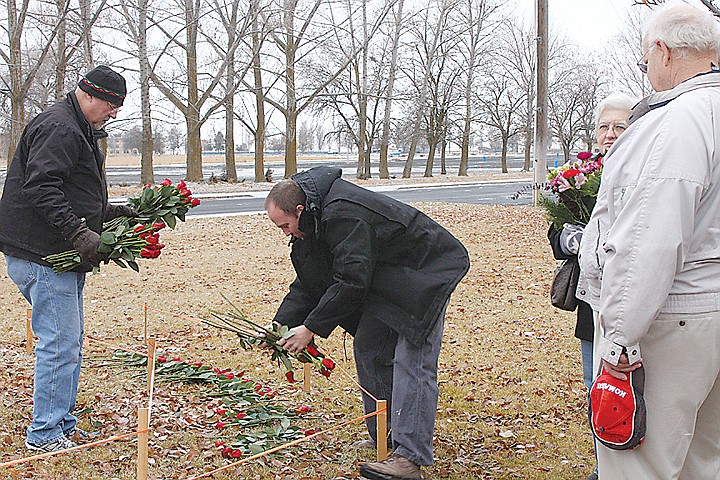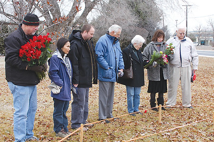 MOSES LAKE - Seven community members laid 87 red roses along the outline of the planned Forgotten Heroes Memorial at Grant County International Airport.