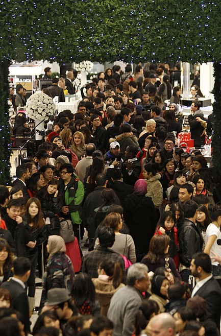 Despite the disruptions, huge crowds - some lining up outside stores from midnight - rushed into department stores in London and other British cities as soon as doors opened early Monday.