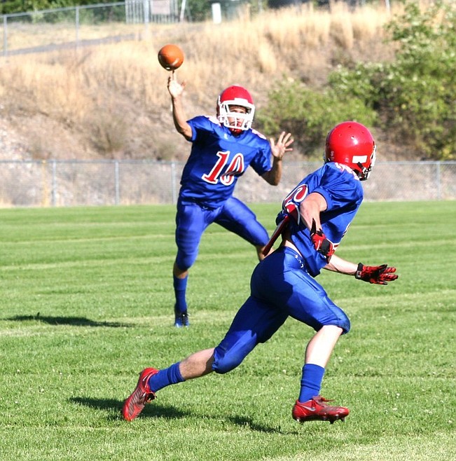 Superior quarterback Billy Smith throws to teammate Matt Campbell during a practice in August.
