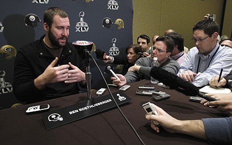 Steelers quarterback Ben Roethlisberger held his mobile phone high, taking photos of the six-deep pack of reporters at his podium.