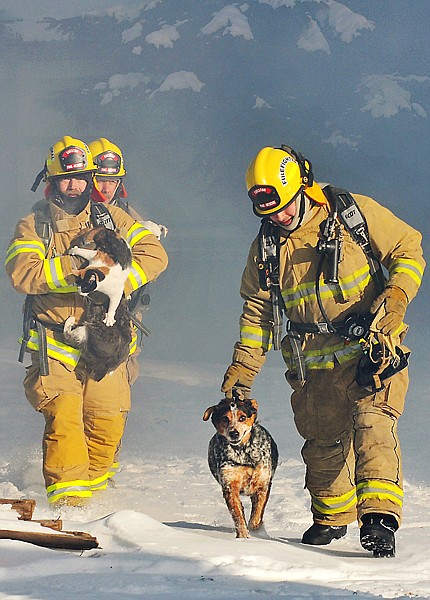 Firefighters rescued cats, dogs and bearded dragon lizards from a burning house just off U.S. 2 east of Columbia Falls Tuesday morning.