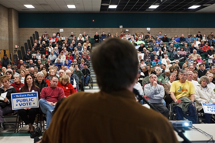 COEUR d'ALENE - By a show of cards, the crowd didn't support the conceptual plan for McEuen Field.
