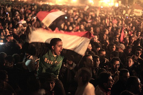 CAIRO - Cries of "Egypt is free" rang out and fireworks lit up the sky as hundreds of thousands danced, wept and prayed in joyful pandemonium after 18 days of peaceful pro-democracy protests forced President Hosni Mubarak to surrender power to the military, ending three decades of authoritarian rule.