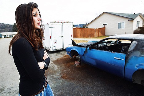 Thursday afternoon, joined by her parents, brother and boyfriend, Sam Travis took a few last looks at the charred remains of her car resting on Webster Street before it was hauled back, this time for good, to the junkyard.