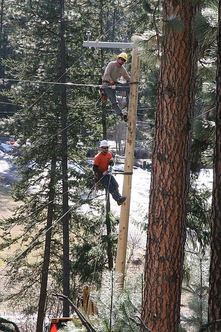Crews installed new poles, climbed the logs and hooked up the wiring.
