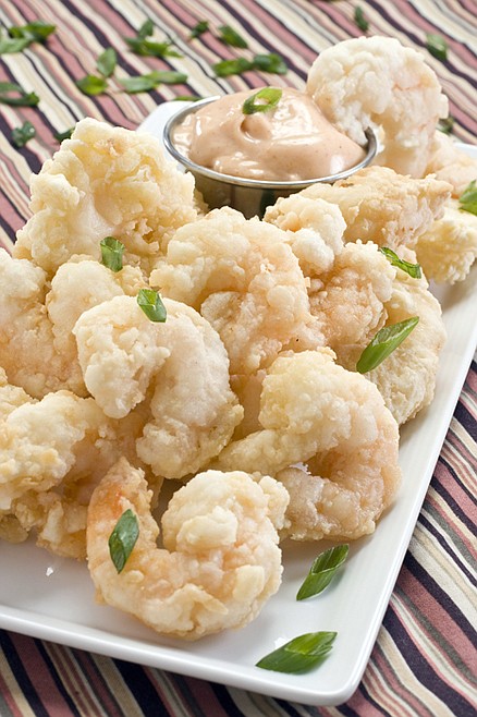 The golden shrimp are served with a sweet-and-spicy sauce made with hot pepper sauce, mayonnaise and honey, all spiked with a Cajun seasoning blend. The results are as irresistible as a basket of hot wings and even better, there are no bothersome bones to get rid of.