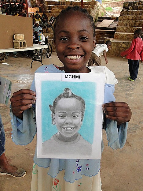Last year, the Haitian girl that Faulkner did a portrait of was so young that she didn't have all of her teeth. But, by the time Faulkner got a photo of the girl with her portrait back, she had a wide grin showing all of her teeth.