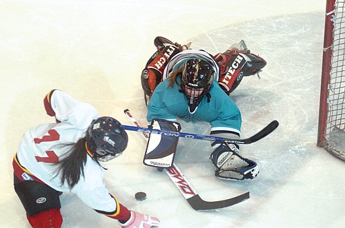 Ice time is tough to find, too. The girls currently get one 55-minute practice session a week at the Ice Den.