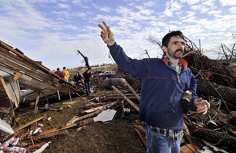 Sisemore said he tried to crawl under his bed and cling to the carpet, fearful a nearby pecan tree would fall into his home. As he nursed cuts, scrapes and bruises to his arms, knees and back, he recalled opening his eyes as he flew because he didn't believe he'd see 2011.