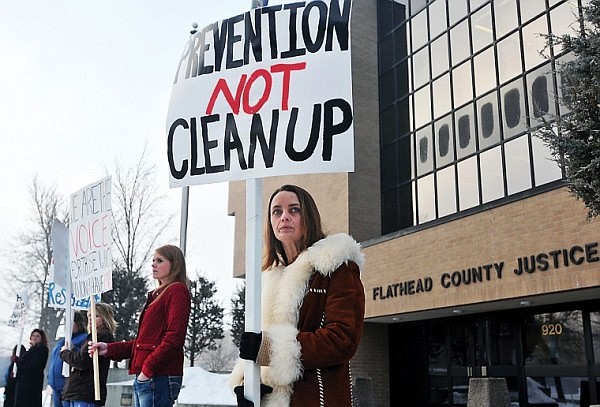 Sarah and a group of women demonstrated outside the Flathead County Justice Center Thursday to bring attention to the case and the plight of domestic violence victims. Calbick was scheduled for a hearing on Thursday, but that was continued to a future date.