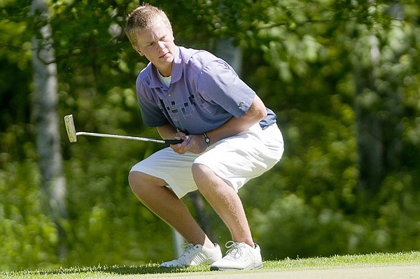 Ryan Porch watches a putt roll in for par on the ninth green during the final round of the Fourth of July Tournament at Whitefish Lake Golf Club Saturday afternoon.