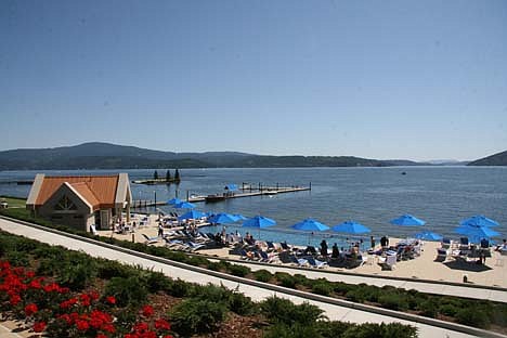 Below the event center along the shore of Lake Coeur d'Alene is a beach, a 70-foot long swimming pool with a full-length "infinity edge," and private cabanas with TVs and refrigerators, said Jerry Jaeger, president and co-owner of Hagadone Hospitality.