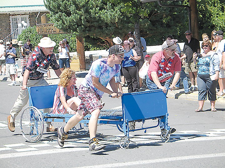 After the parade, three teams raced beds down Main Avenue. The wheeled bed frames were pushed down the hill by teams. The winning bed was a wire-framed cot with a metal steering handle. Skotland said it was the chamber of commerce's bed.