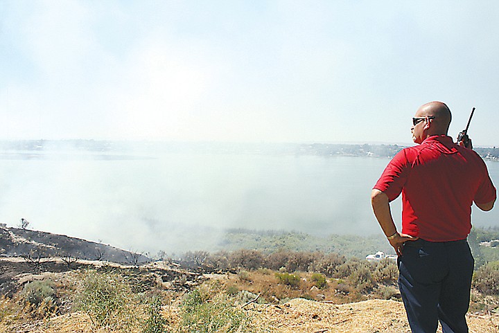 At the same time, around 2:30 p.m., another fire scorched a large area of grass near Montlake Park in Moses Lake, stopping short of train tracks near a dry bank topped by several homes.