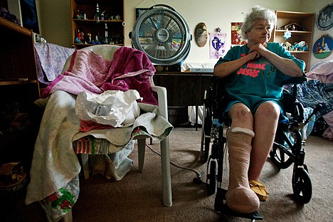 "They put a 'hold' on me," Thompson said as she wheeled around her Post Falls apartment in a wheelchair, with a wound vac working away on her foot. "I was a prisoner."