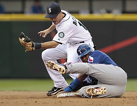 Holland threw just 54 pitches in the first five innings and the closest the Mariners came to a hit was Ichiro Suzuki's slow-hit bouncer to second baseman Ian Kinsler in the fourth. Kinsler raced to his left and had time only to slap the ball with his glove to first baseman Mike Napoli to beat Suzuki by a half step.