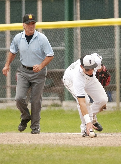 Glacier Twins first baseman Cody Elek fields a ground ball during the top of the third inning against the Lethbridge Elks Friday afternoon.
