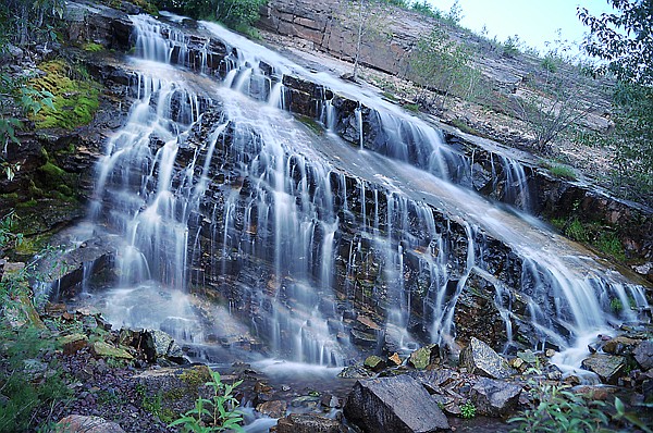 Hell Roaring Creek cascades down a hill side along the North Fork Road about 14 miles from Columbia Falls on Thursday, July 14, in the Flathead National Forest.