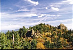 Near Spokane, this lengthier hike leads to the imposing Rocks of Sharon. The trailhead is near the south end of Tower Mountain, along Holman Road. Following Iller Creek, the route climbs high above the countryside.
