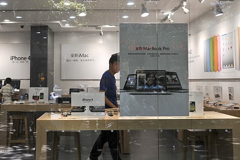 BEIJING - It looks almost exactly like a sleek Apple store. Sales assistants in blue T-shirts with the company's logo chat with customers. Signs advertising the iPad 2 hang on the white walls. Outside, the famous logo sits next to the words "Apple Store" - one of the few clues that the whole thing is a fake.