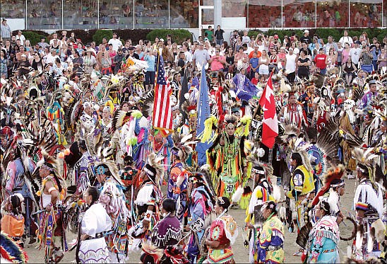 The powwow starts at 8 a.m. today with art exhibits and vendors. The drum roll call is at 6 p.m., followed by the horse parade at 6:30 p.m. and grand entry at 6:50 p.m.