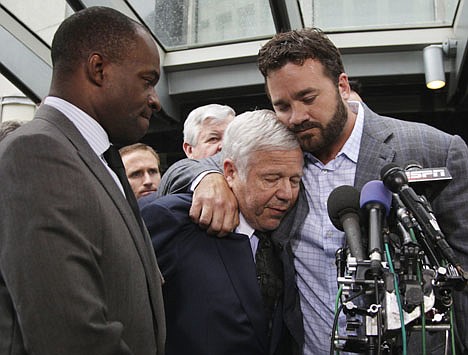 Then came what may truly be the lasting image of the dispute's resolution: Indianapolis Colts offensive lineman Jeff Saturday wrapped one of his burly arms around New England Patriots owner Robert Kraft and enveloped him in a hug - a gesture that symbolized the acrimony's end more than any statement could.
