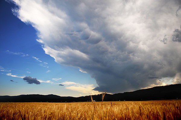 Sprawling storm clouds rise above the western edge of Kalispell on Monday evening. A series of storms blasted through the valley on Monday.
