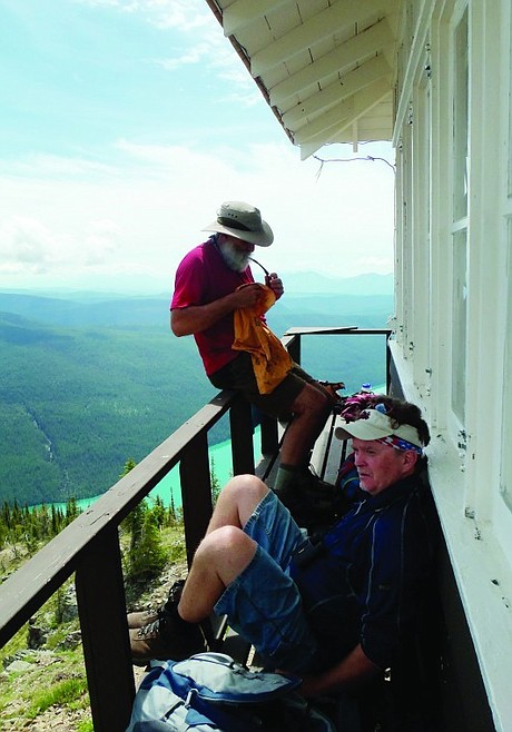 George Scherman and Gene Marcille visit during a lunch break at the lookout.