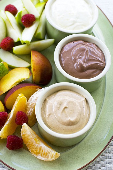 Serve the dips with cut up wedges of apples, pears, peaches and berries.