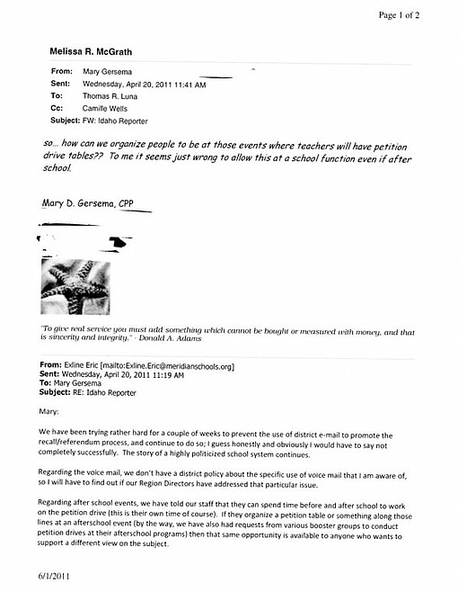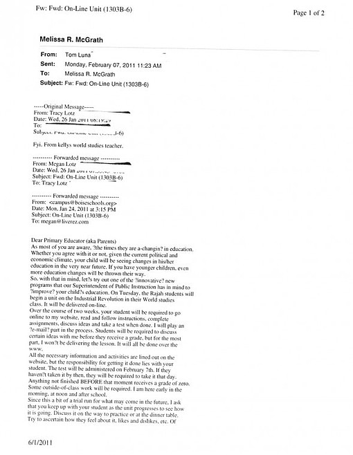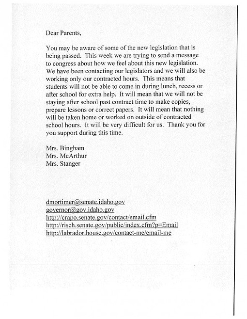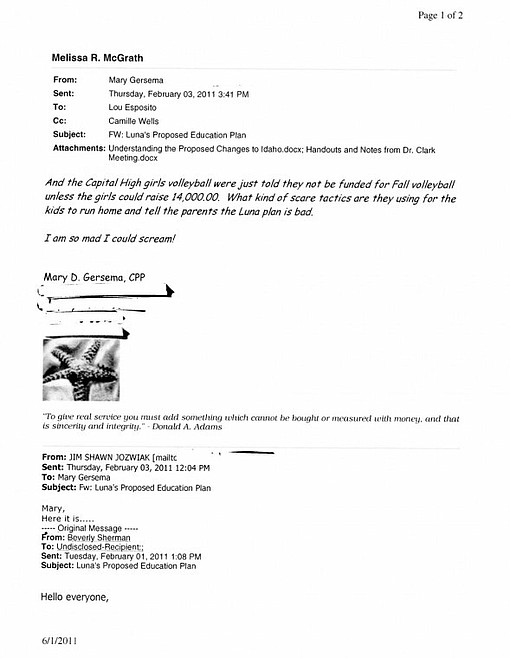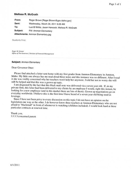 Late Wednesday, the Press received this memo from Melissa McGrath of the Idaho Department of Education.