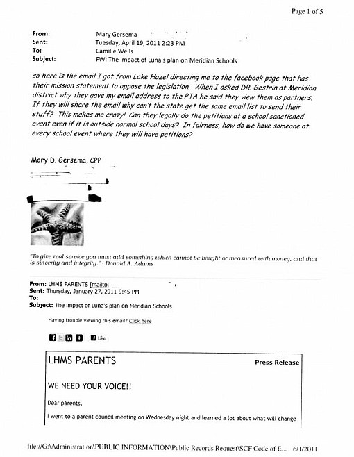 These requests were made in response to a memo Superintendent Luna sent to all school districts on May 13, 2011 reminding them of the Code of Ethics for Idaho Professional Educators.