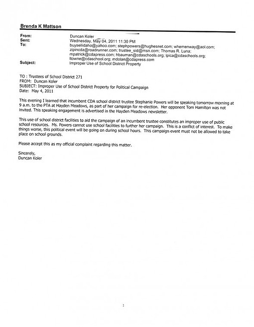 I think you will see from the attached documents, both prior to May 13 and after May 13, that the SDE had received numerous inquiries and complaints from people across the state concerned about political activities on school grounds.